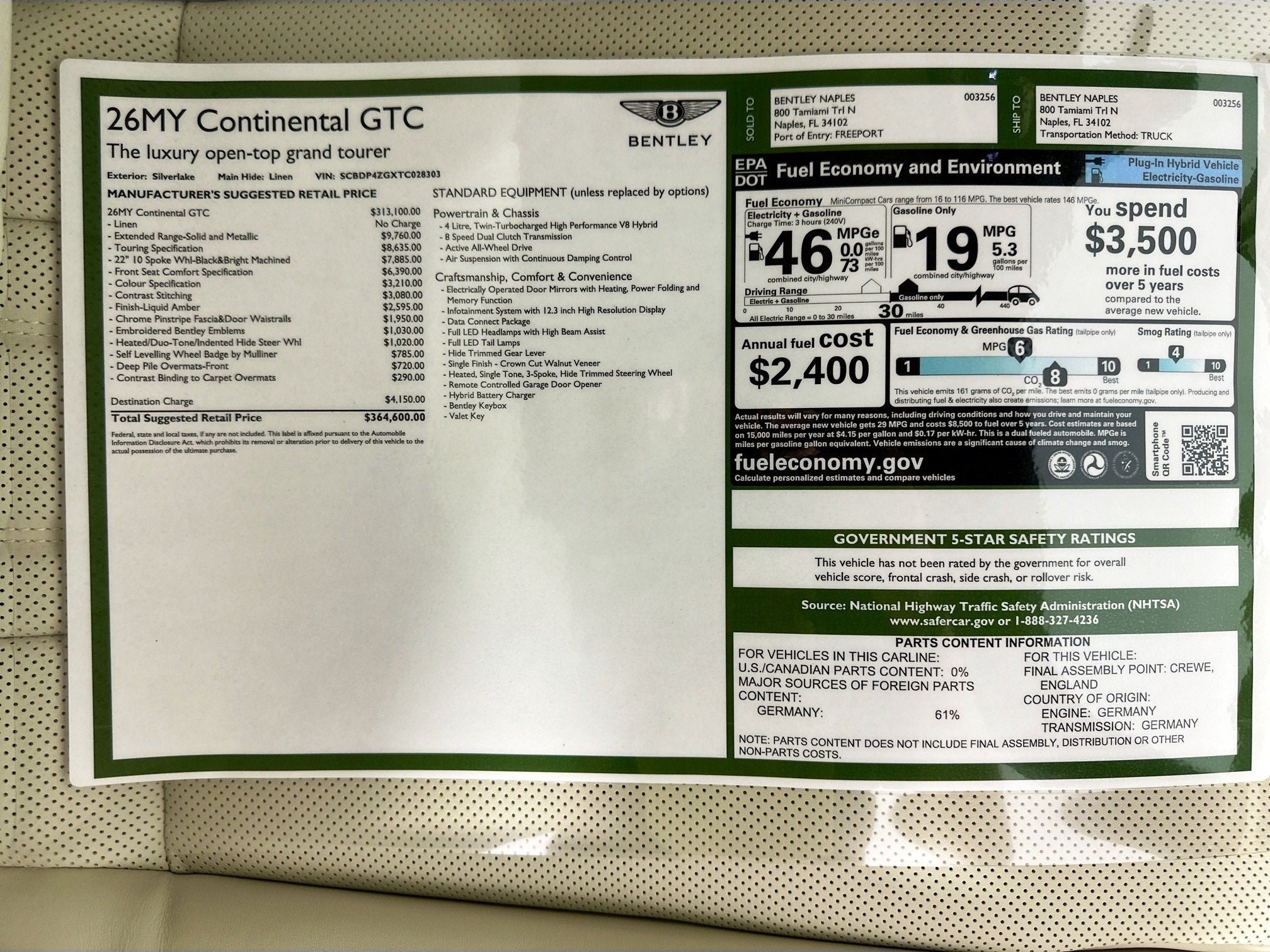 2026 Bentley Continental GTC Base Naples FL | SCBDP4ZGXTC028303