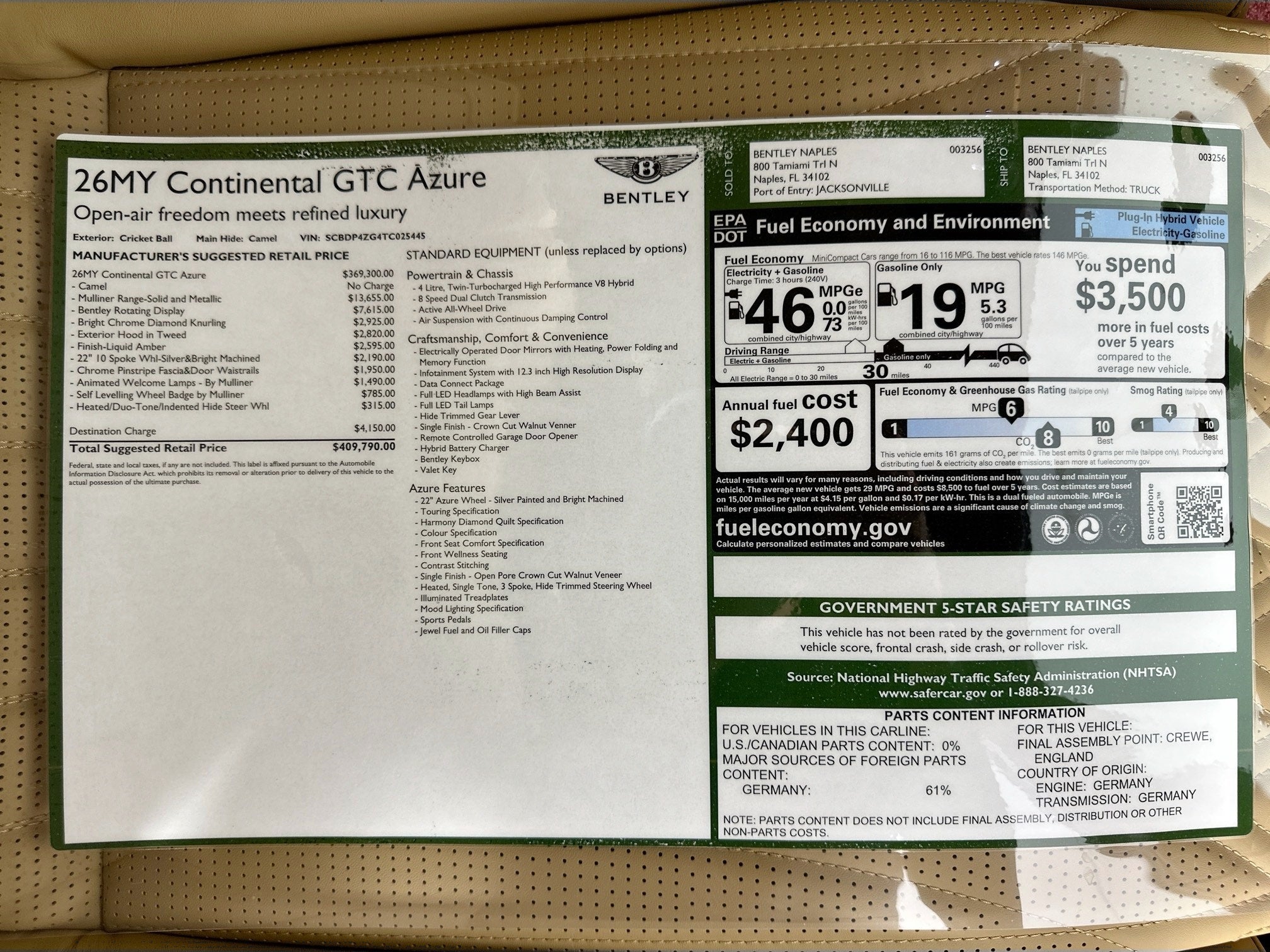 2026 Bentley Continental GTC Azure Naples FL | SCBDP4ZG4TC025445