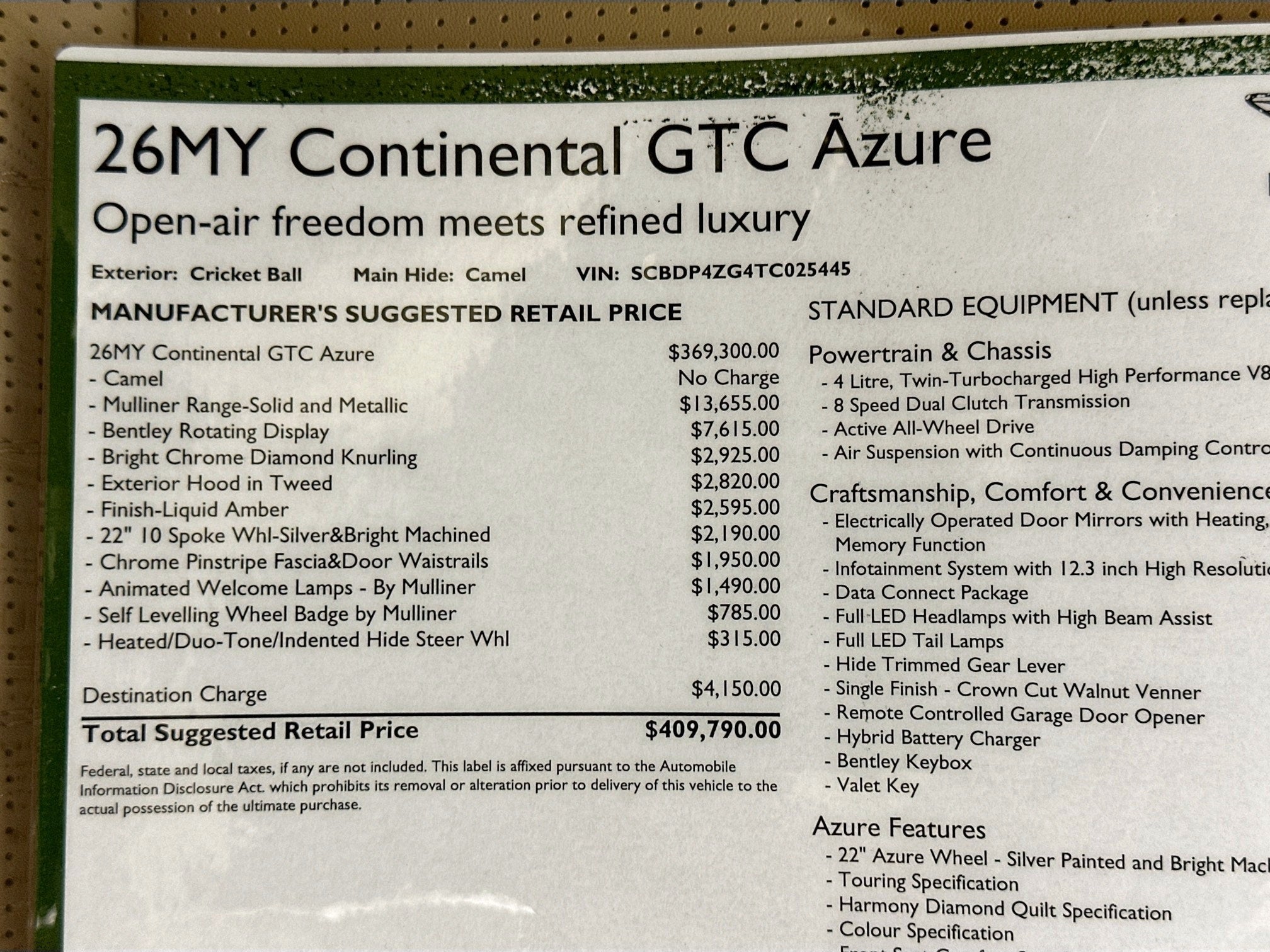 - Retail Price: $409,790