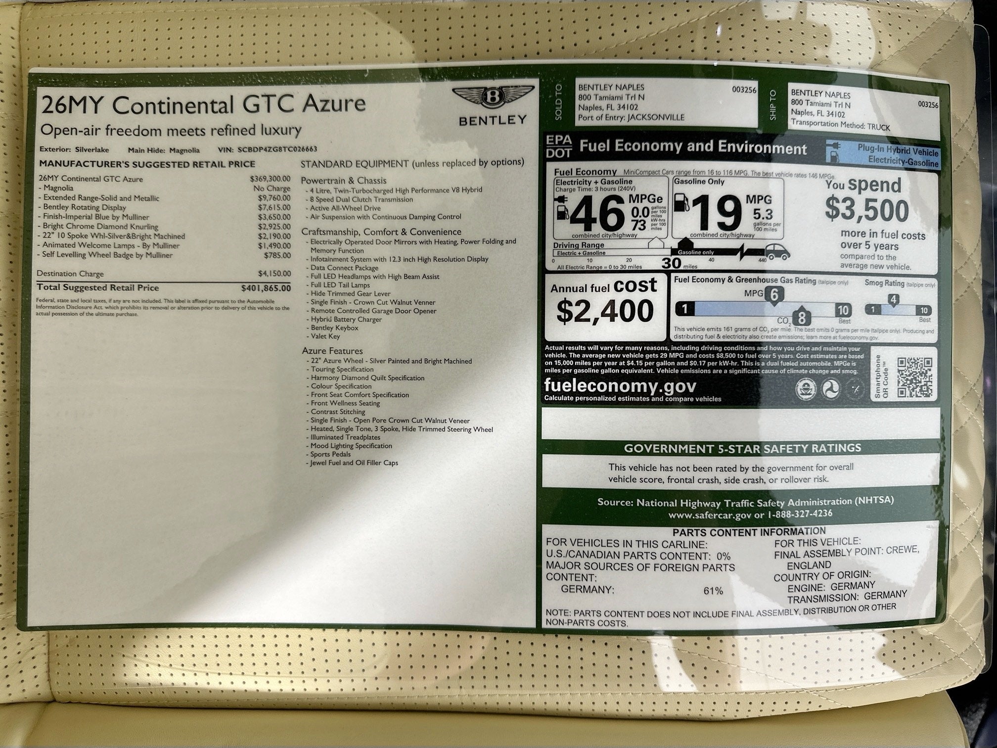 2026 Bentley Continental GTC Azure Naples FL | SCBDP4ZG8TC026663