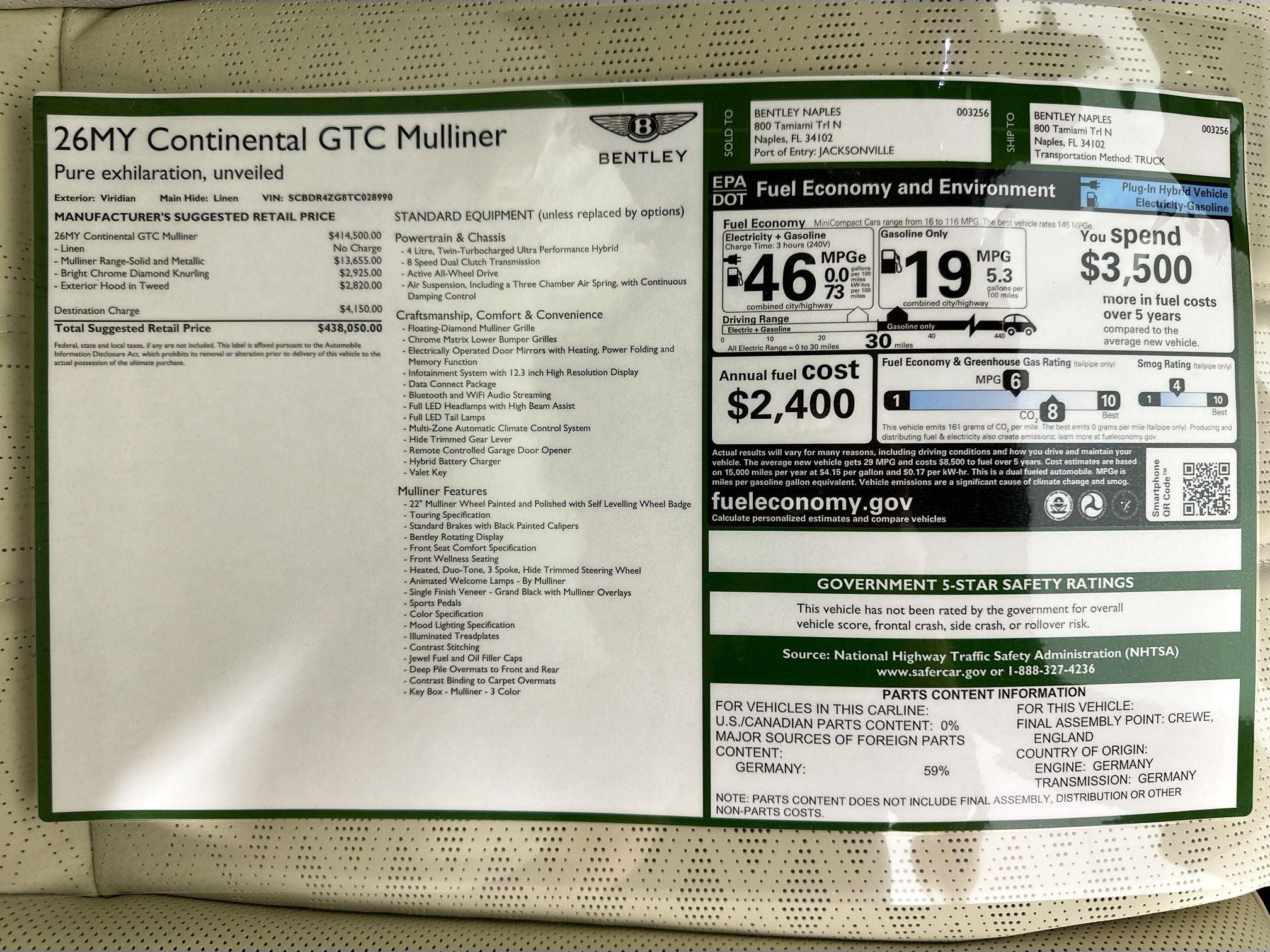 2026 Bentley Continental GTC Mulliner Naples FL | SCBDR4ZG8TC028990