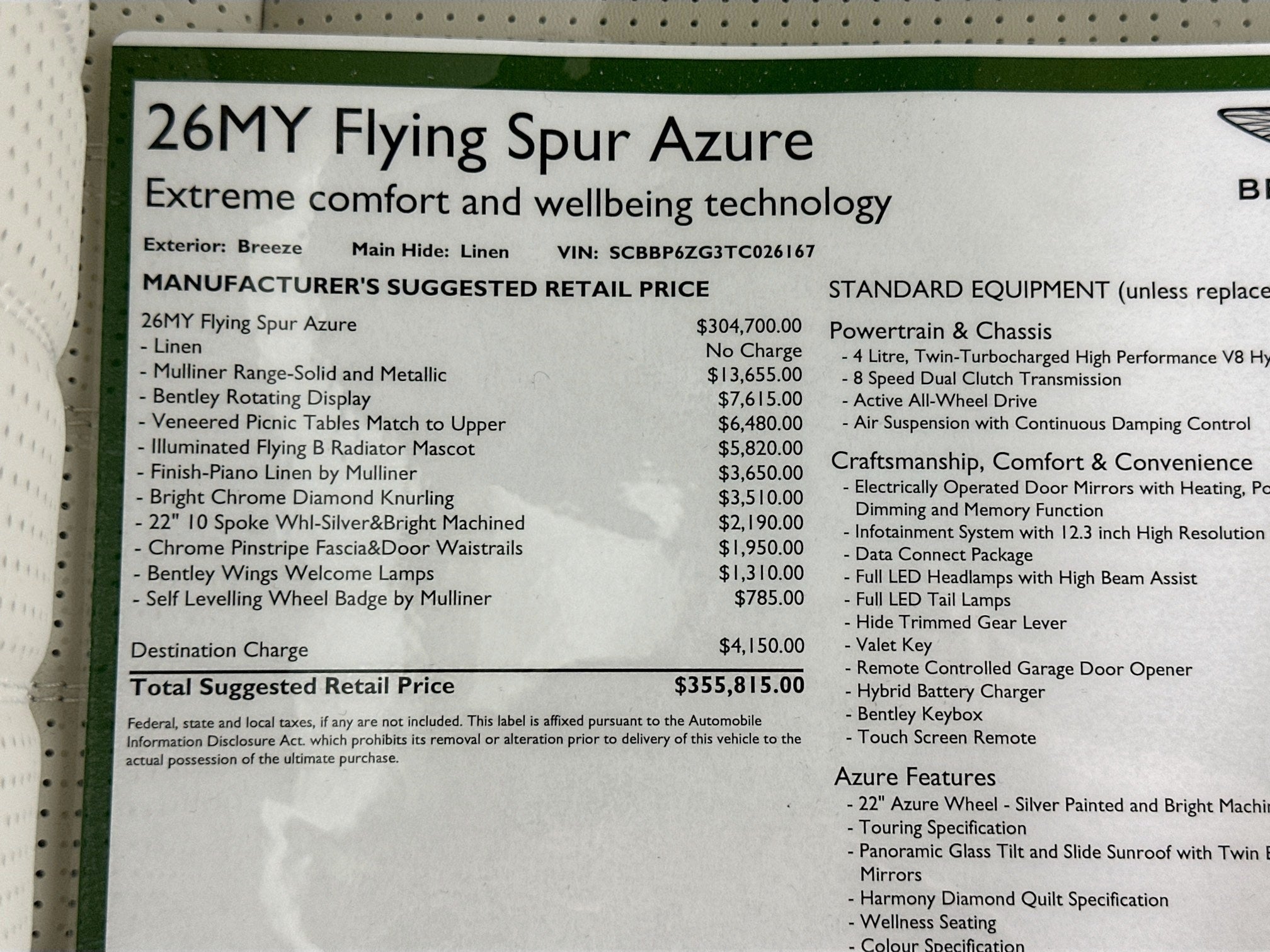 - Retail Price: $355,815