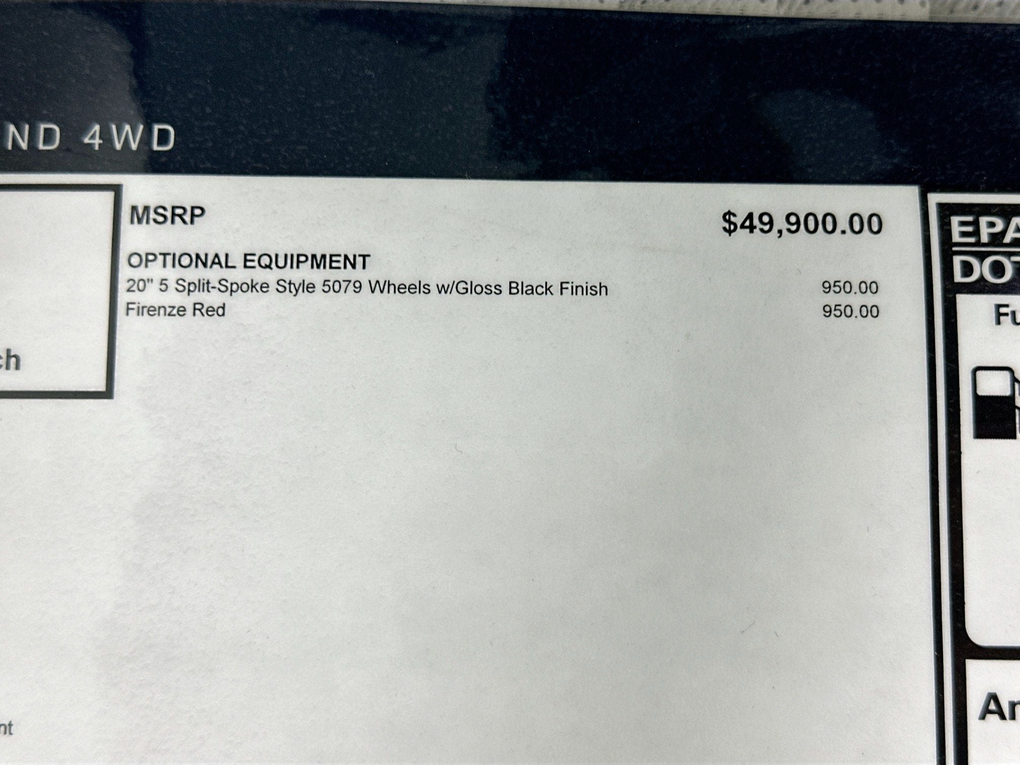 - Rear Tire Size: P235/50VR20