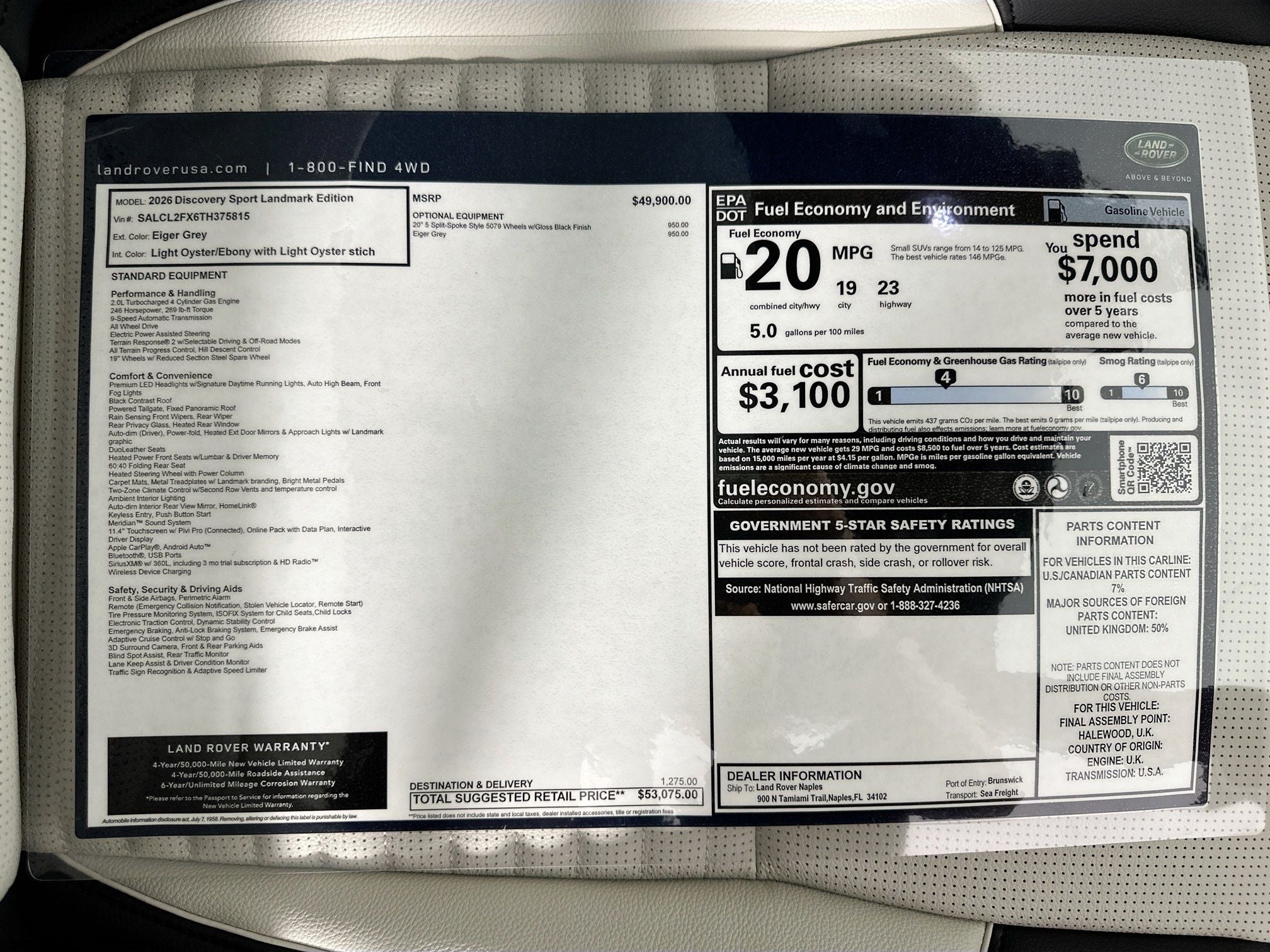 2026 Land Rover Discovery Sport Landmark Naples FL | SALCL2FX6TH375815